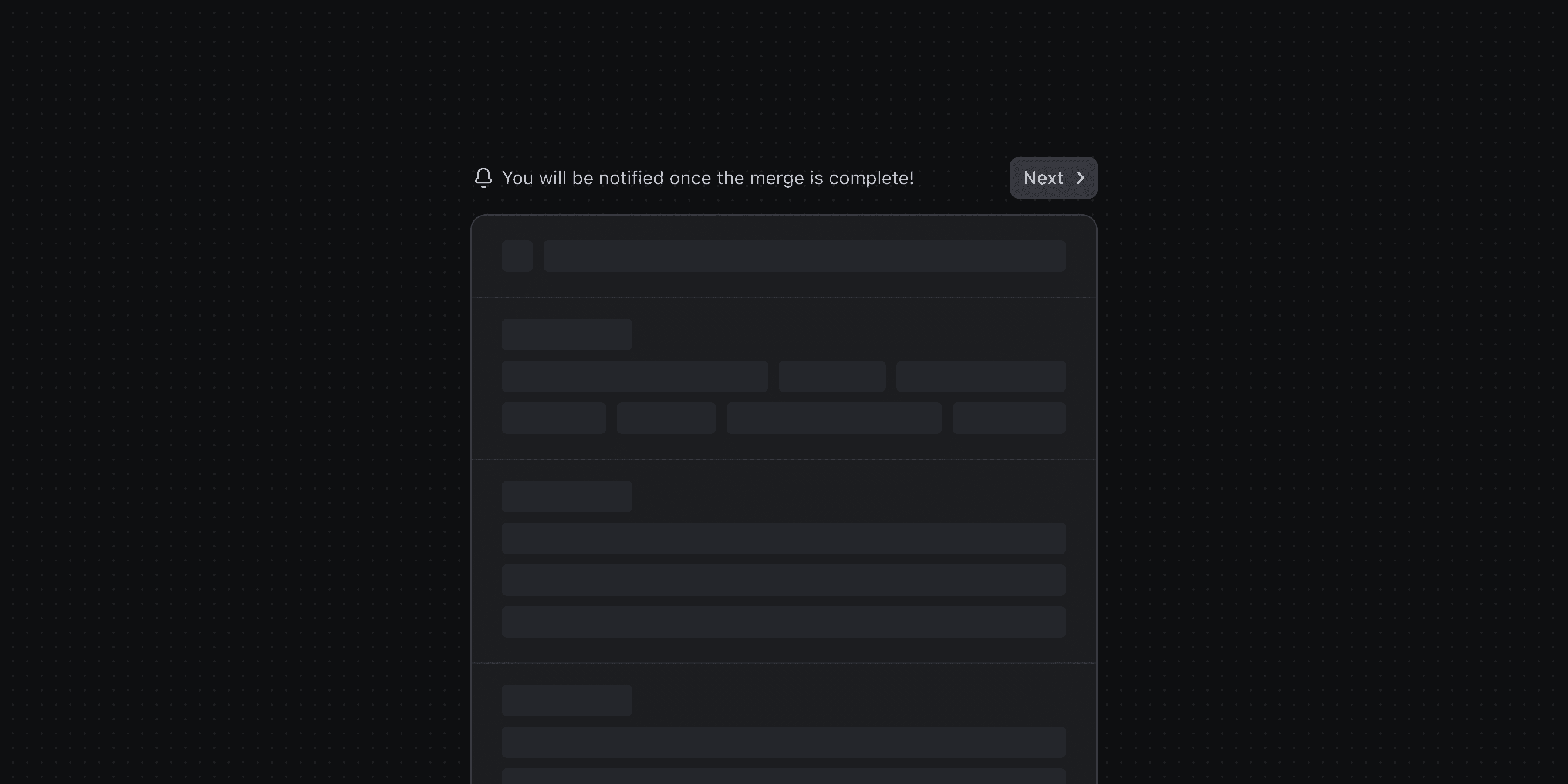 To keep users informed without breaking their flow, I designed toasts to deliver updates during the merge process.