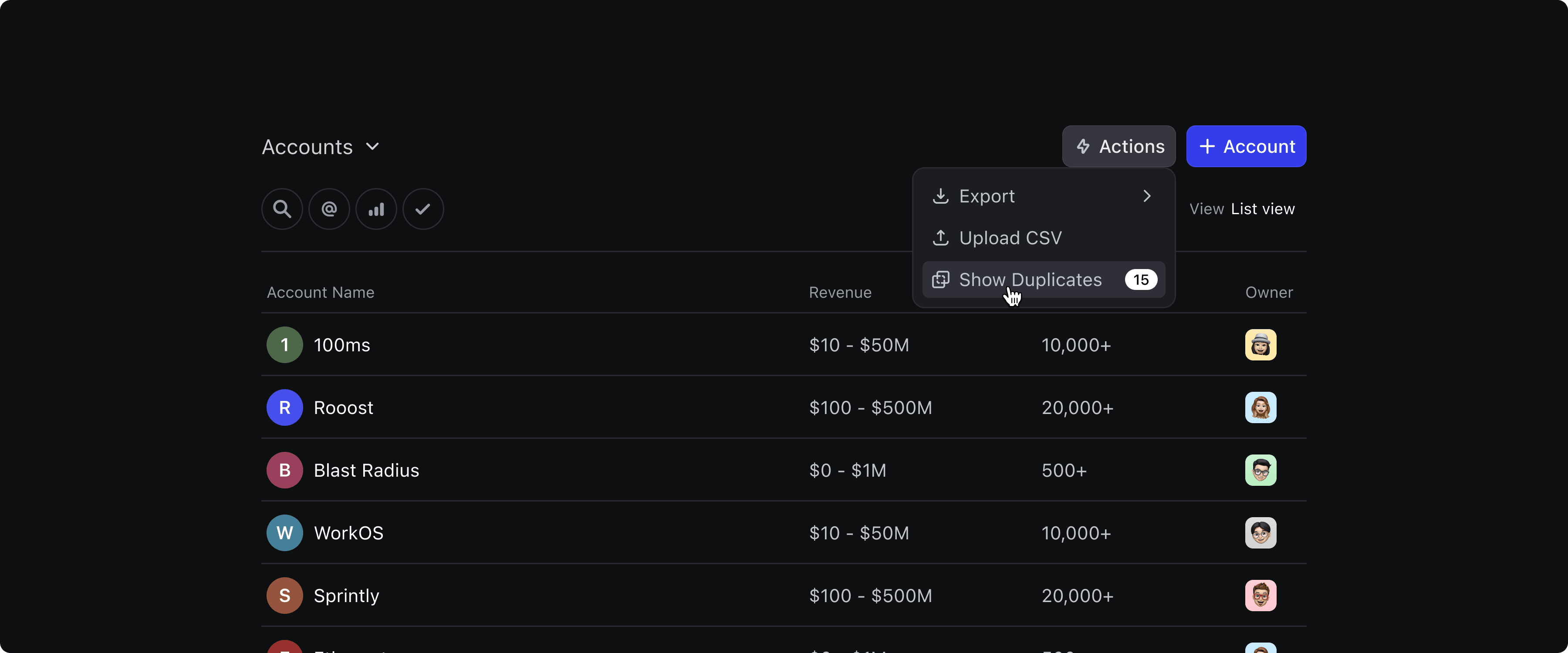 Merging accounts is a high-stakes decision. To honour the sensitivity, I introduced a dedicated focus view for duplicate resolution: