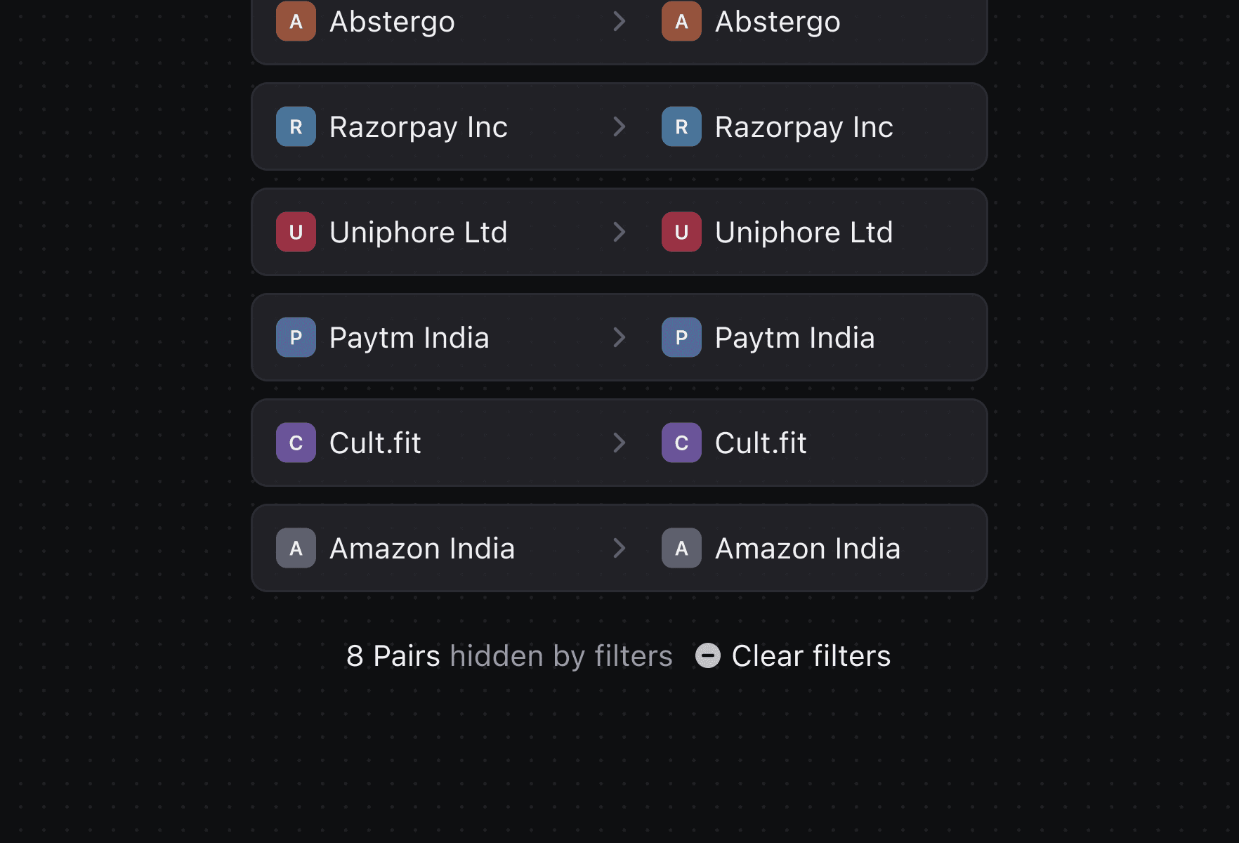 Hidden Pair Visibility: Sometimes the filters result in an empty-looking list, even when duplicates exist. To avoid confusion, I added a visible prompt when results are hidden due to active filters.
