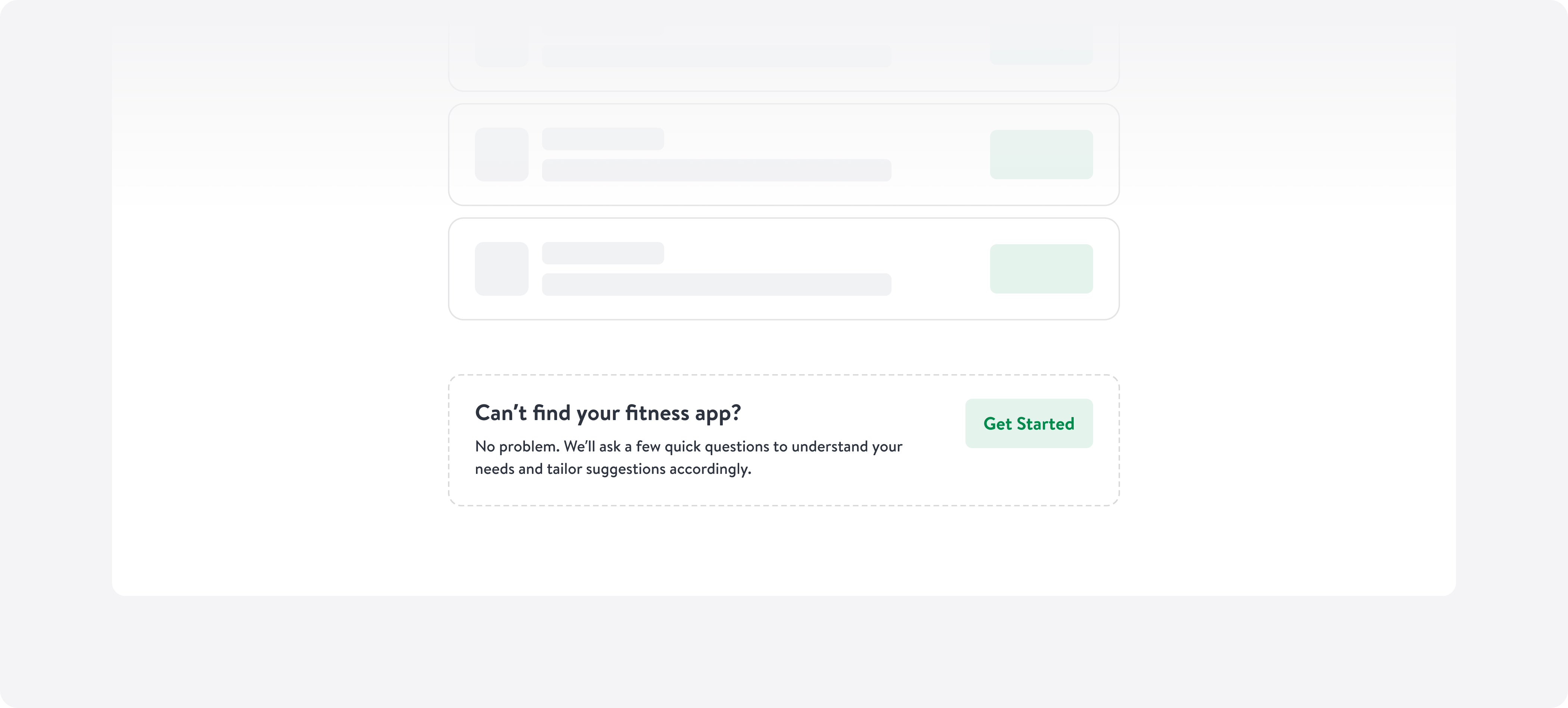 If the user’s app isn’t listed, we prompt them to share which one they use. This helps us consider it for future integrations while guiding them through the same easy setup flow designed for people who don’t use fitness apps, which we are covering next.
