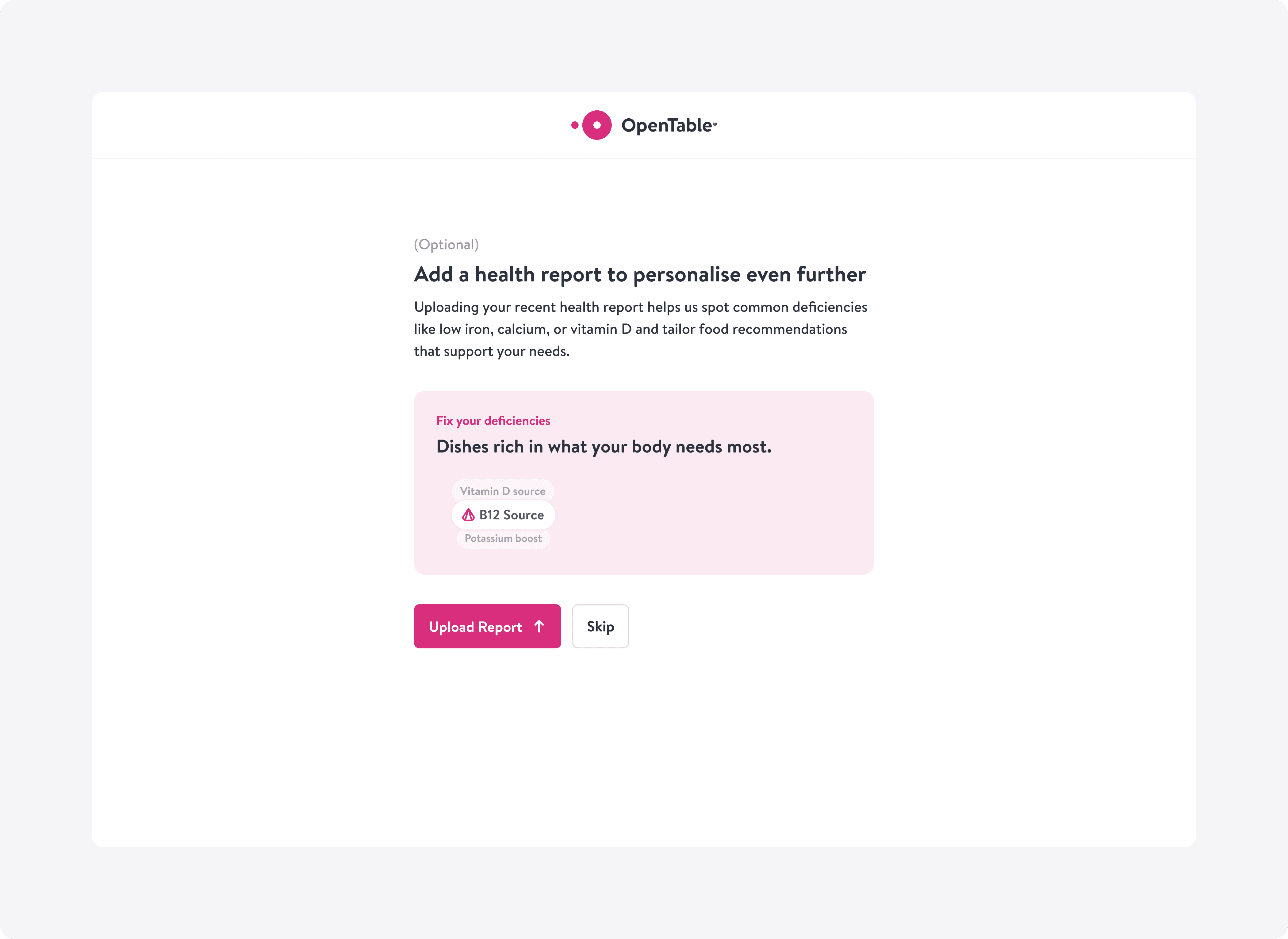 For instance, if the report indicates a B12 deficiency, OpenTable will highlight B12-rich dishes directly on the menu. This ensures that recommendations are aligned with nutrition goals as well as actual health needs. Just a thought.