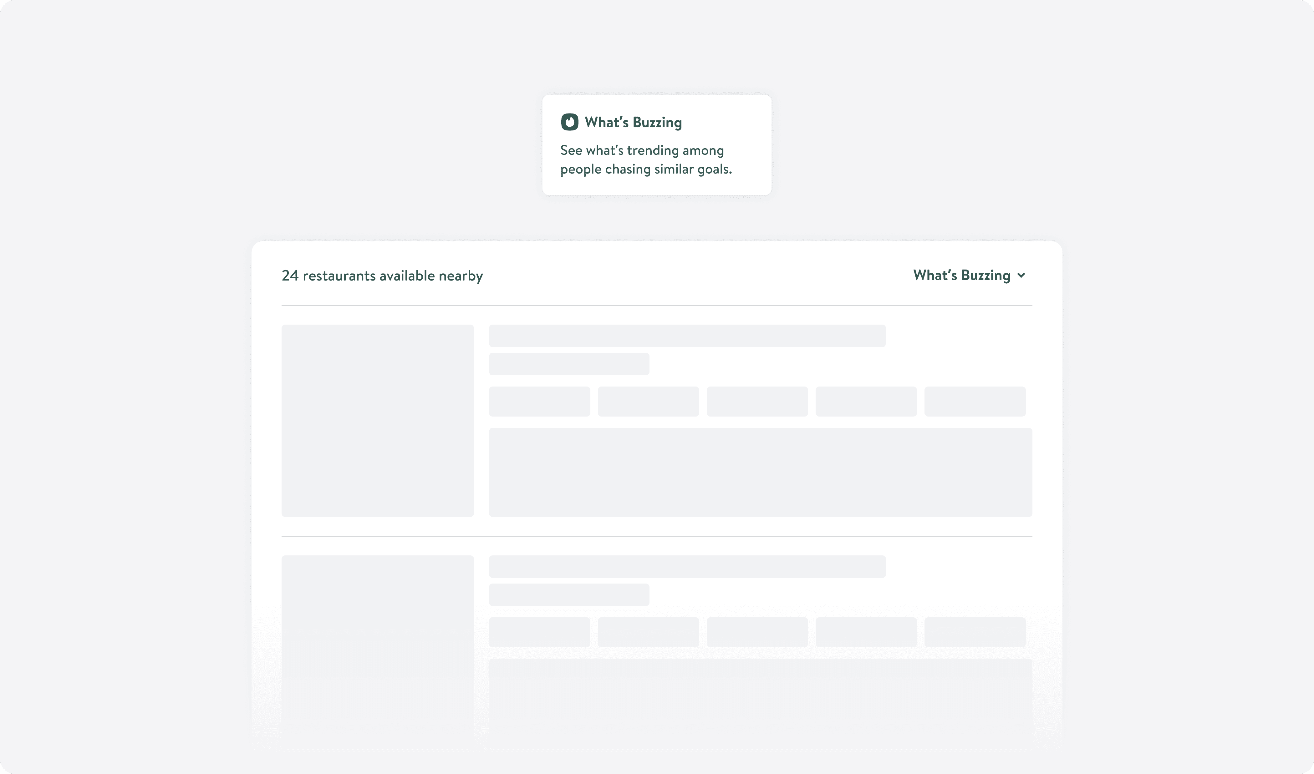 What’s Buzzing is a smart way to surface trending restaurants among people with similar goals as the user.